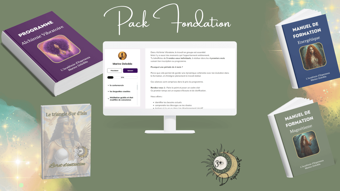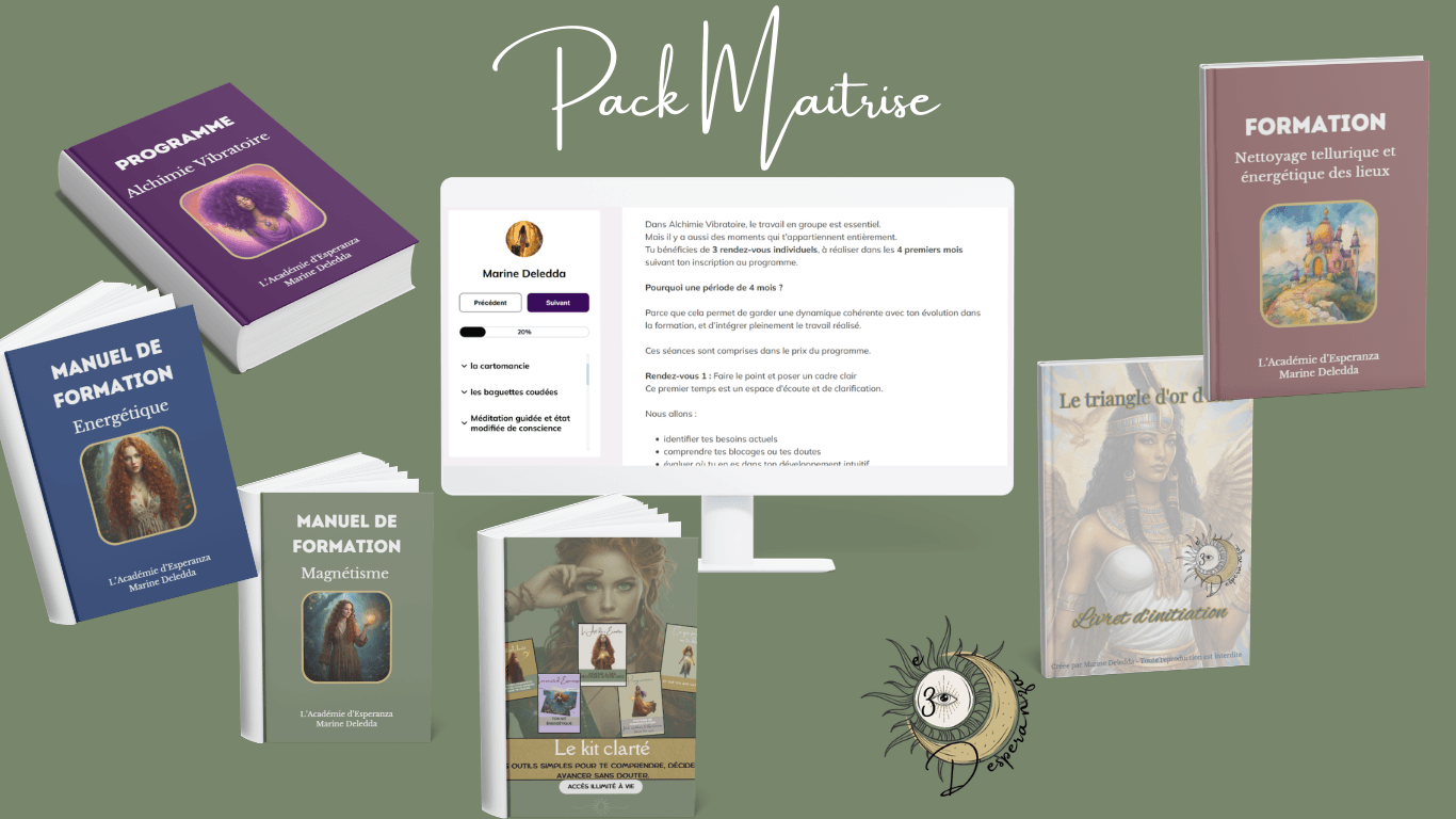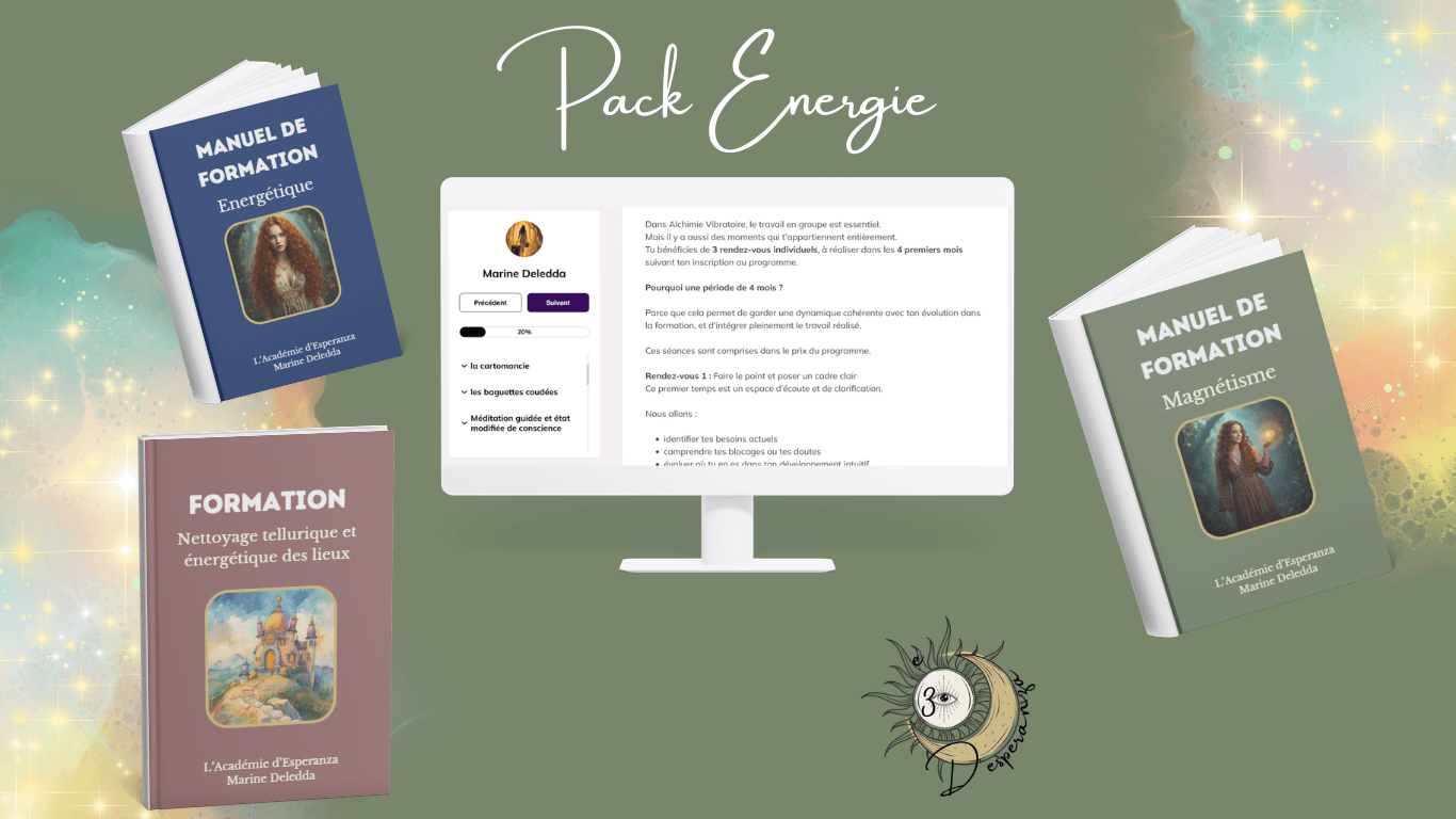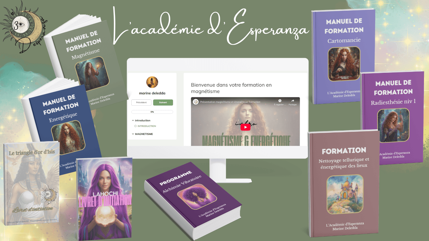 Bienvenue dans l’Académie d’Esperanza : ton parcours pour explorer l’énergie, l’intuition et les outils énergétiques, que ce soit pour toi ou pour devenir praticien·ne professionnel·le.