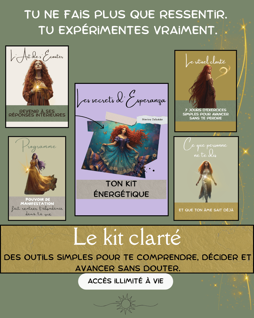 Juste des outils concrets, des exercices puissants et un accompagnement pour te reconnecter à ton énergie, développer ton intuition et avancer pas à pas, à ton rythme.